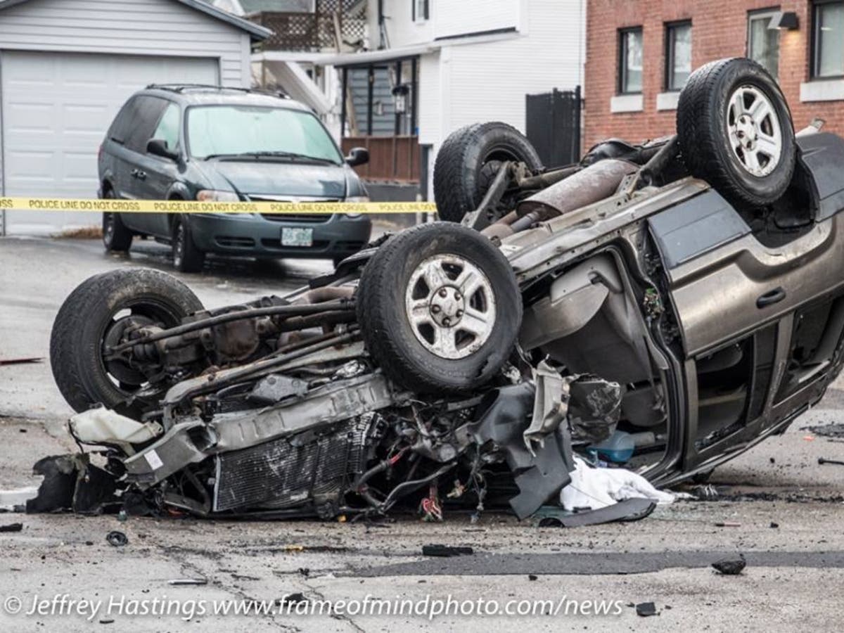 “The inverted vehicle landed west of the address after striking and damaging the building’s fire panel,” according to Lt. Brian O’Keefe of the Manchester Police Department. “The Manchester Fire Department extracted the unresponsive women from the wreck before AMR Ambulance transported her to the Elliot Hospital.”