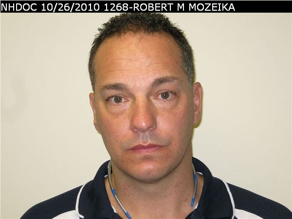 Mozeika was sentenced in Merrimack County Superior Court to four years minimum to 10 years maximum for theft by unauthorized taking with 294 days of time served credited to his sentence. He began serving this sentence on April 15, 2013, and was eligible for parole on June 23, 2016. His maximum release date is June 22, 2022.