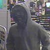Images of the suspect were obtained from the store surveillance system. The subject was described as a young white male (late teens to early twenty’s), approximately 5’6 to 5’10, with a medium build. The subject was wearing dark pants, a light-gray hooded sweatshirt, and some type of mask that covered his face.