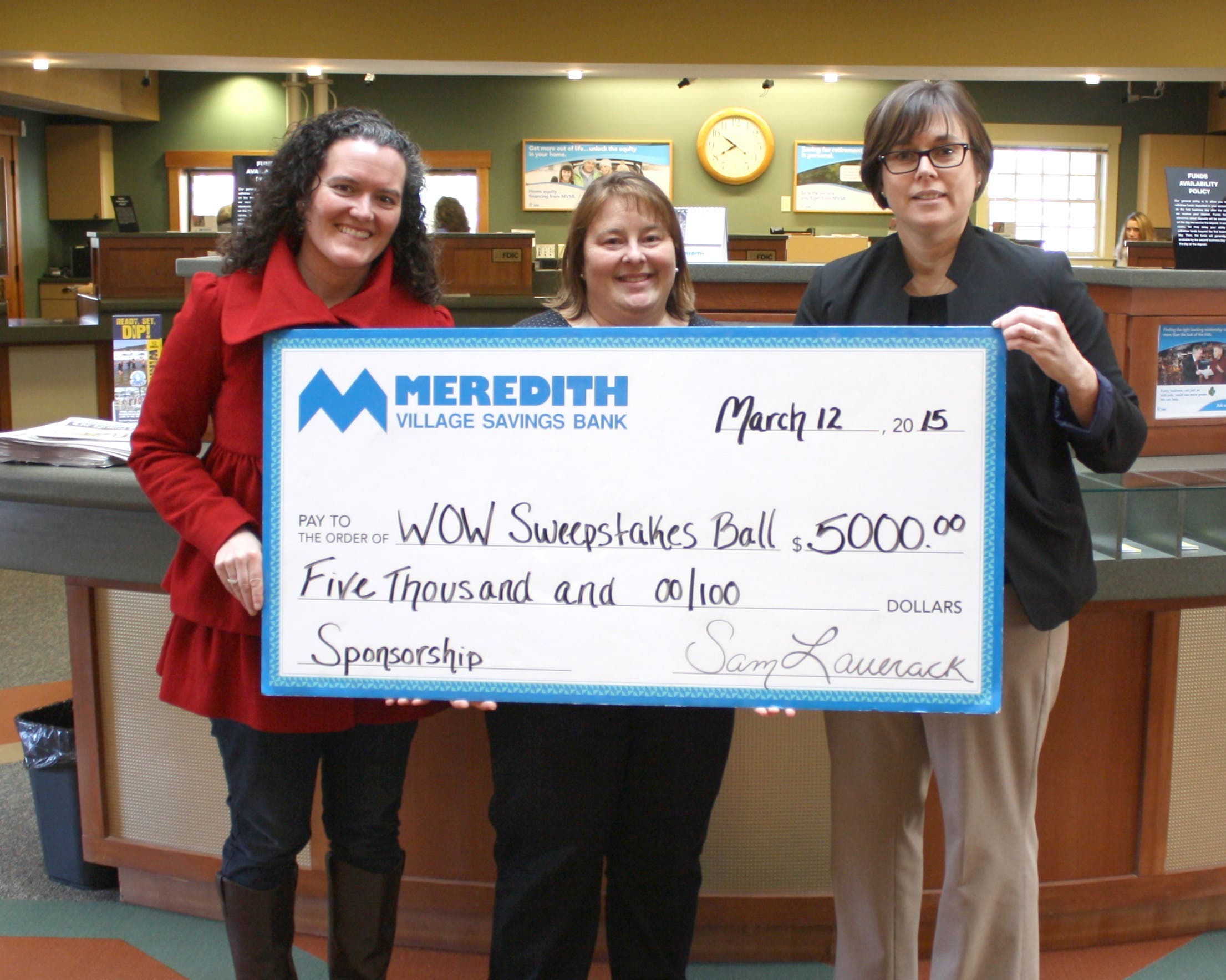 Meredith Village Savings Bank (MVSB) has signed on as Presenting Sponsor for the 2015 WOW Sweepstakes Ball, which will be held at the Lake Opechee Inn & Conference Center on Saturday, May 16, according to a press statement. This will be MVSB’s sixth consecutive year as Presenting Sponsor for this event.
