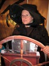 The most amusing tent, called Mrs. Manseau’s Emporium of the Eclectic, wasn’t actually selling anything. She had a table full of bits and pieces — watch faces, old keys, buttons, hex nuts — and was demonstrating to visitors what hip-looking jewelry can be assembled from the stuff at the bottom of your grandmother’s junk drawer. She had also set up a photo booth to look like the bridge of a steamship, and she took my picture as I steered it across the square, no doubt on a collision course with the tent full of cloth purses.