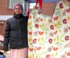 In my calf-length, velvet-collared coat (a find) and a bowler hat, I fit in fairly well. Some exhibitors’ outfits were more entertaining than their wares, but my greatest shopping score was at the tent of the Multicultural Family Center. Khina the quilter, clad in a perfectly conventional knitted wool hat, was kind enough to let me take her picture with her marvelous creation. As I carried it around the square, I was the envy of the exhibitors, many of whom said they’d had their eye on the same piece.