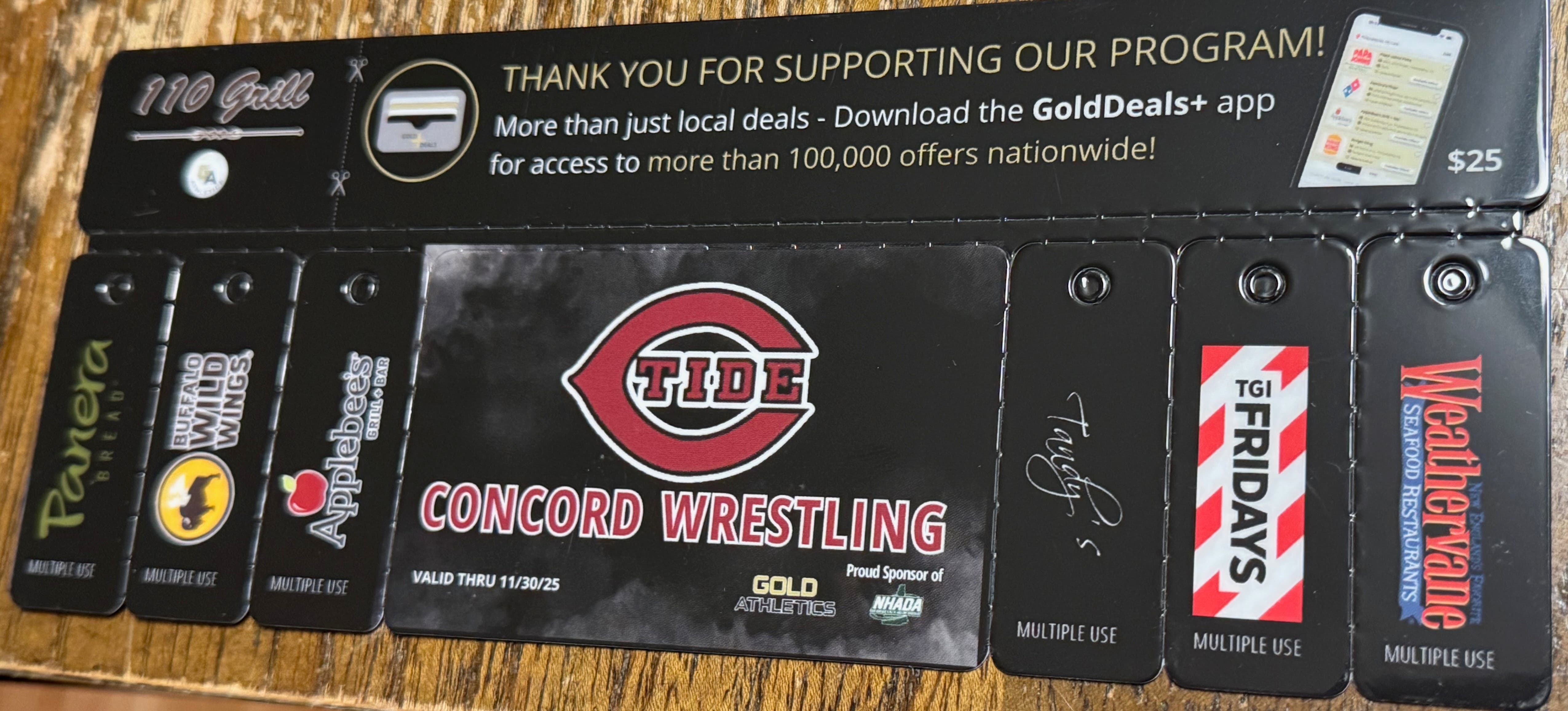 Wrestlers are going door-to-door around the city and reaching out to friends and family to raise about $25,000 for the season to offset fee and tournament costs and fees, gear, and other items. The team is selling restaurant discount cards for $25 with discounts from several Concord and participating locations.