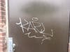 The south side of Phenix Hall on North Main Street was tagged with spray paint recently and police are looking for tips to find the perps.