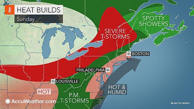 AccuWeather.com predicts that the humidity will creep into the region tonight with t-storms possible in parts of New Hampshire. The warm weather is expected to continue after the storms on Sunday, early Monday, and Tuesday, according to meteorologists.