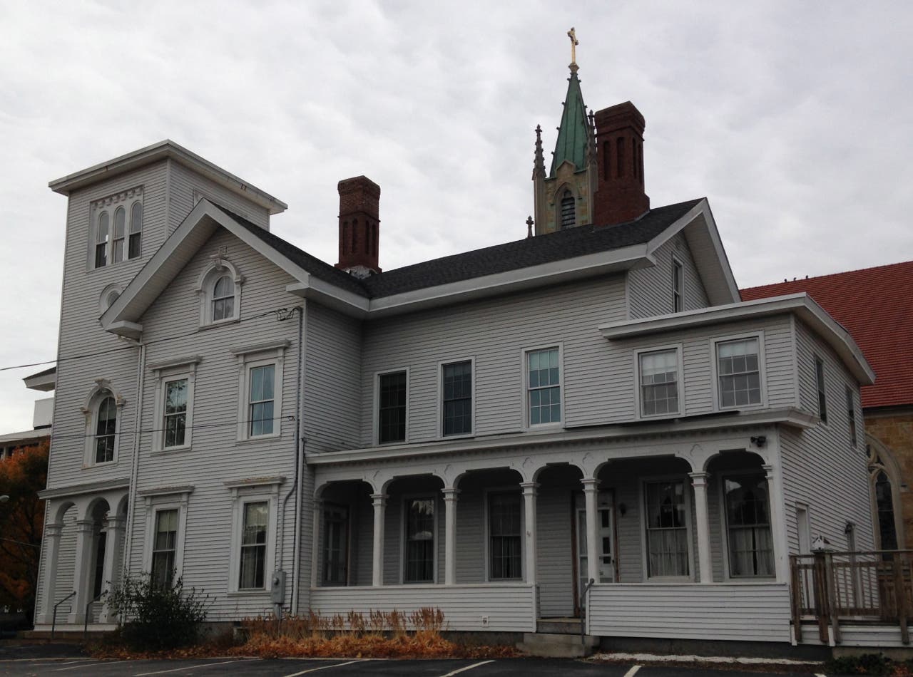 Sacred Heart Parish first opened in 1892 and was the city’s French speaking parish at the time. The church was built in the 1930s. The rectory was known as the Corning House before the church purchased it in the 1920s.