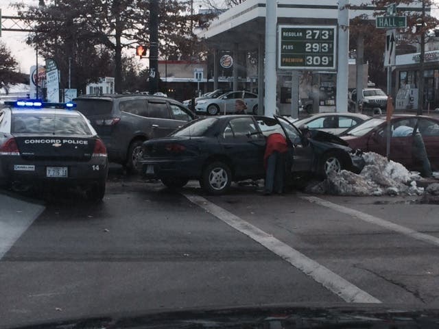 A crash occurred at the intersection of Water and Hall streets in Concord at about 2:30 p.m. on Dec. 1, according to a post on Twitter and a picture submitted to Patch.