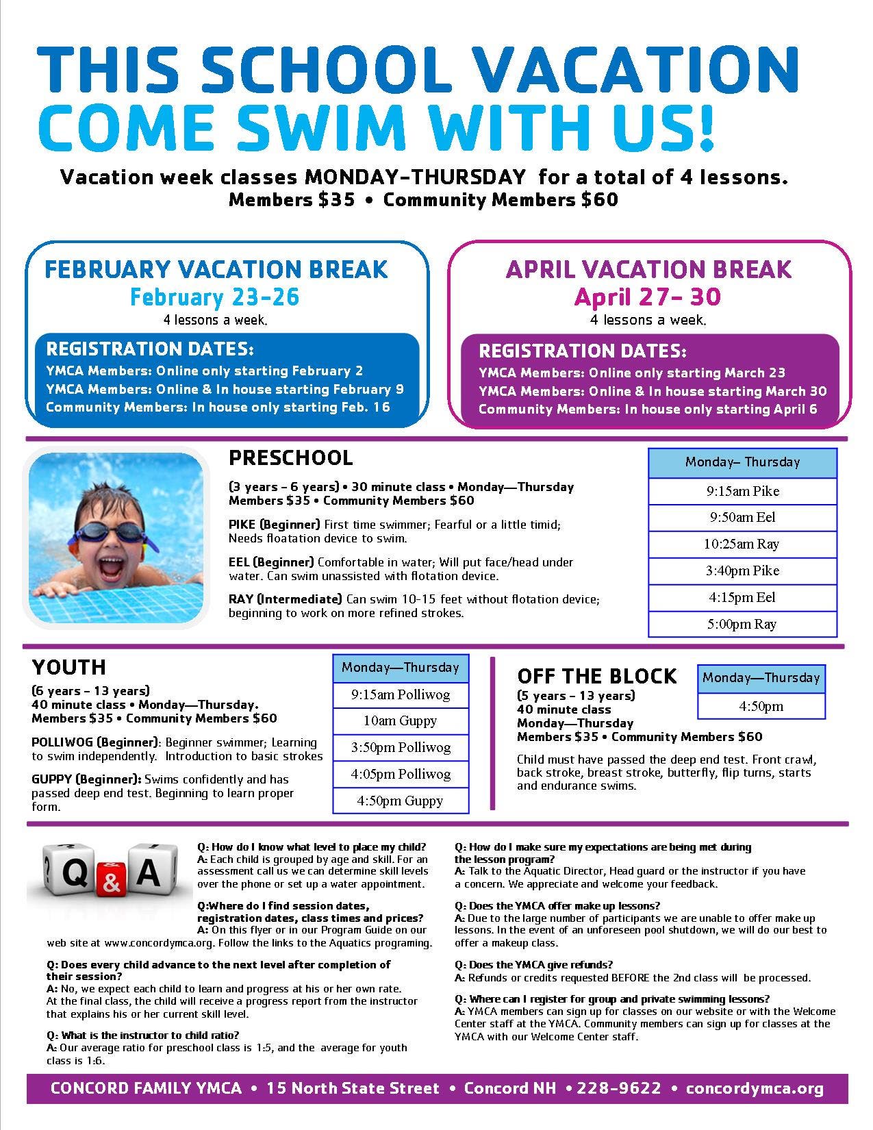 NEW! The Concord Family YMCA offers February Break Swimming Lessons for all abilities