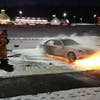 Mercedes Benz catches on fire at the Hooksett Rest Area last night.