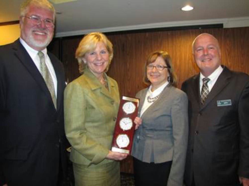 Caption: Robert Dunn, Jr. Esquire, Devine, Millimet, & Branch; Senator Jeanie Forrester of Meredith; Roxie Severance, Board Chairperson-NHHCA and Administrator & CEO-the Morrison inWhitefield; John Poirier, President & CEO, NHHCA.