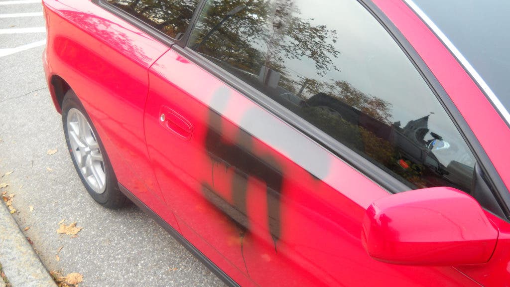 The graffiti contained "swastikas and other obscene remarks" and was done in red and black paint, according to a police report.