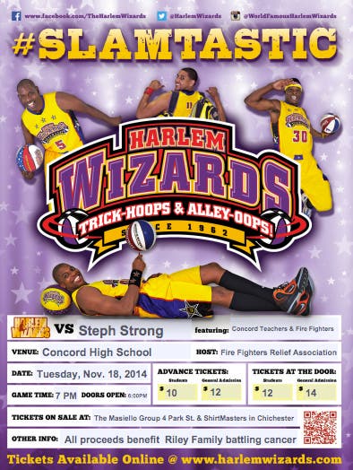Harlem Wizards in Concord Tuesday to Raise Money for the Riley Family