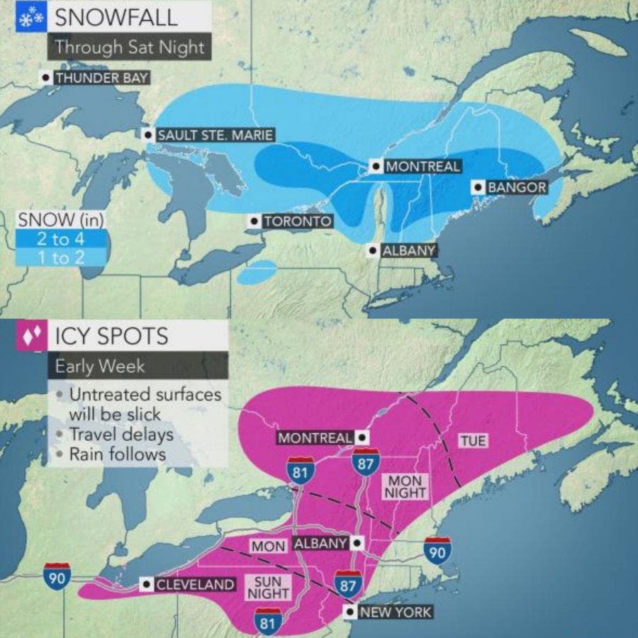 Light snow – of up to 3 inches – is expected in the late afternoon and through this evening which could make travel – on an already complicated evening, New Year’s Eve – a bit slippery, according to the alert.