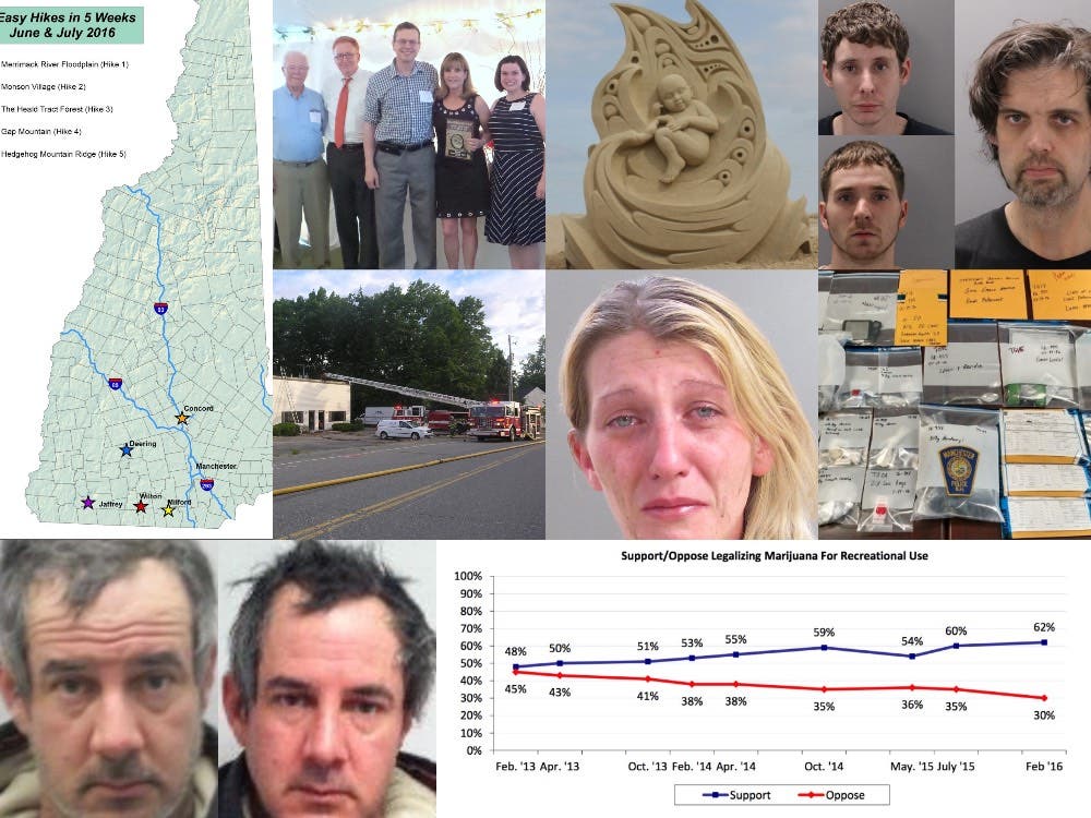 Plus, Hampton Beach sand sculpting underway, mom allegedly nods on heroin with kids in the car, and Souhegan business leaders feted.