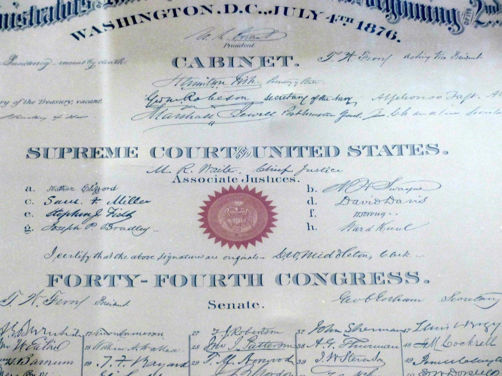 House Speaker unveils Centennial of American Independence doc signed by President Grant; it was found in a crate in the Archives building.