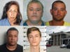 Images via police file photos; court photo via Tony Schinella, Patch staffer.