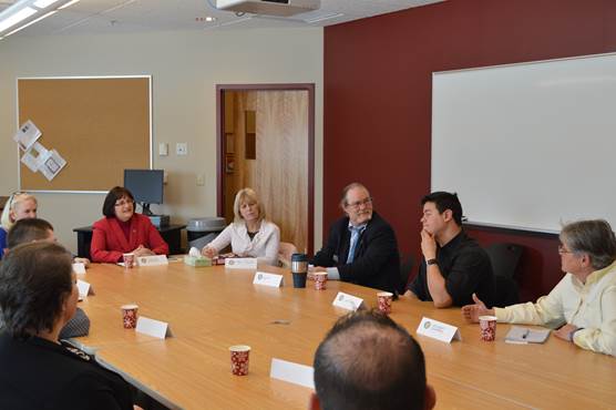 Caption: Rep. Kuster talks with student veterans and higher education administrators today in Concord.