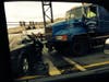 A tractor-trailer truck crashing into a vehicle on Manchester Street at the I-93 northbound Exit 13 off ramp tied up traffic for more than an hour today.
