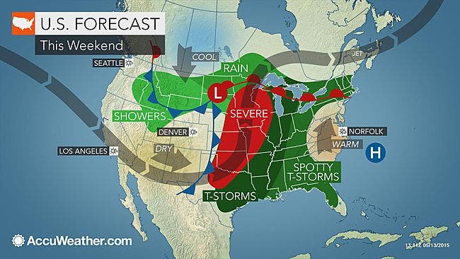 AccuWeather.com forecasters are predicting showers on Friday and Saturday, with potentially severe thunderstorms hitting New England. But it won’t be a total washout. The sun is expected to return on Sunday.