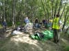 The area, which is frequently by a number of homeless campers during the last few years, was filled with all kinds of garbage and refuse, from broken glass, burned wood, food debris, beer cans and other alcohol containers, and even the back seat cushion to a Volkswagen bus which was lodged into the sand along the banks of the river. There were warnings by the police and fire officials that weapons and used hypodermic needles might be found, but no injuries to the volunteers were reported.