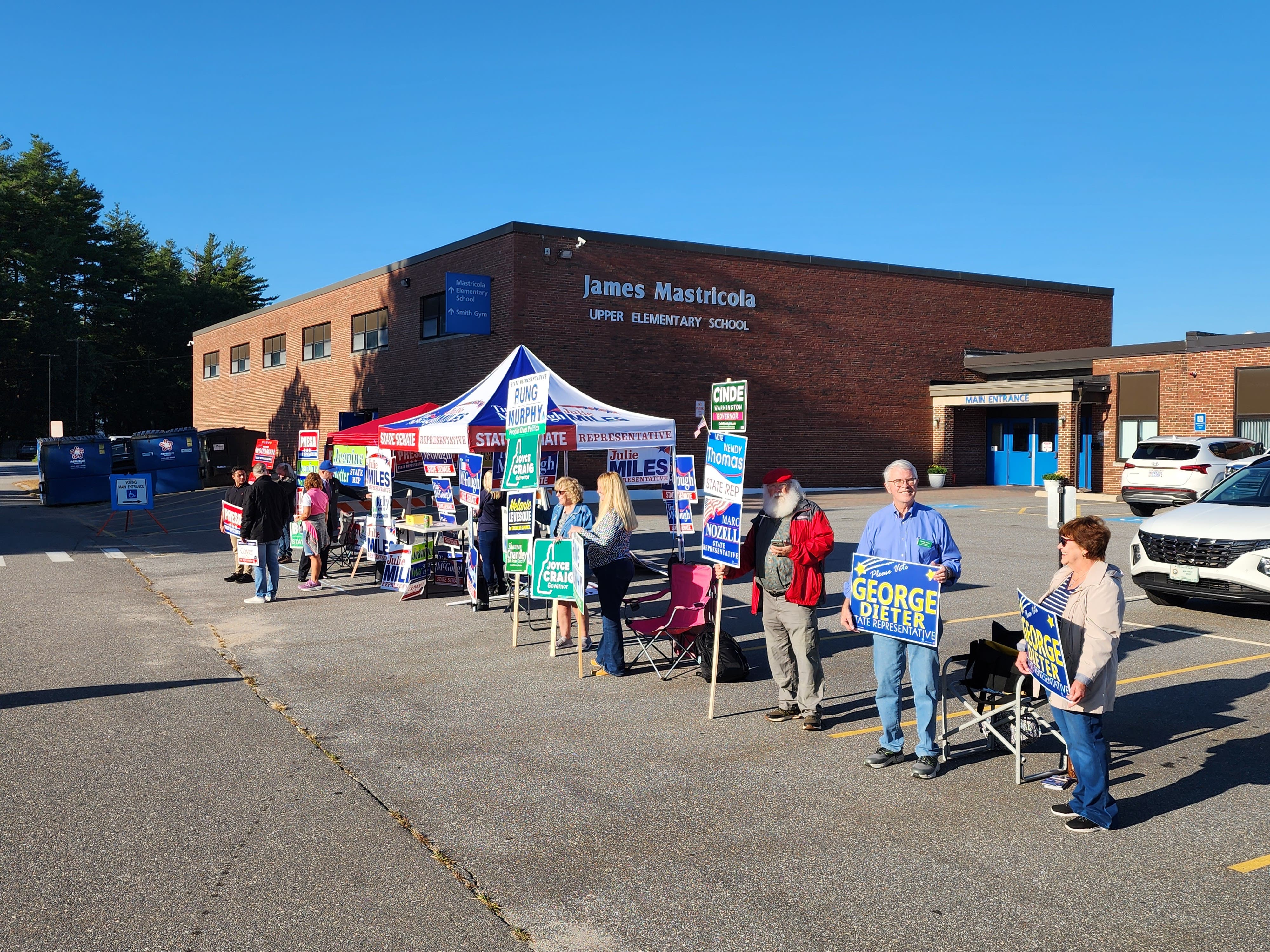 The polls outside the James Mastricola Elementary School in Merrimack on Tuesday morning. Credit: Jeffrey Hastings