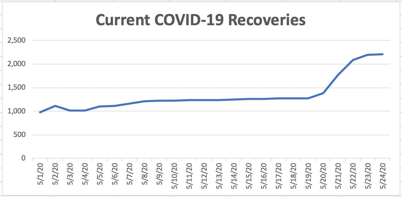 This chart shows the accumulative tracking of COVID-19 patients who have recovered from the virus during the month of May. Credit: Tony Schinella