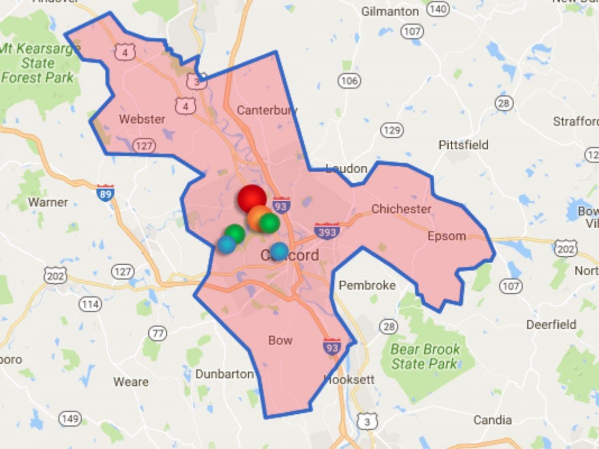 CONCORD, NH — More than 2,200 Unitil electric customers are without power at this hour, according to posts online and tips to Patch. At just before 1:45 p.m. on Jan. 18, 2017, a number of residents in the northern part of the city reported hearing a bang in the area of Manor Road and Borough Road.