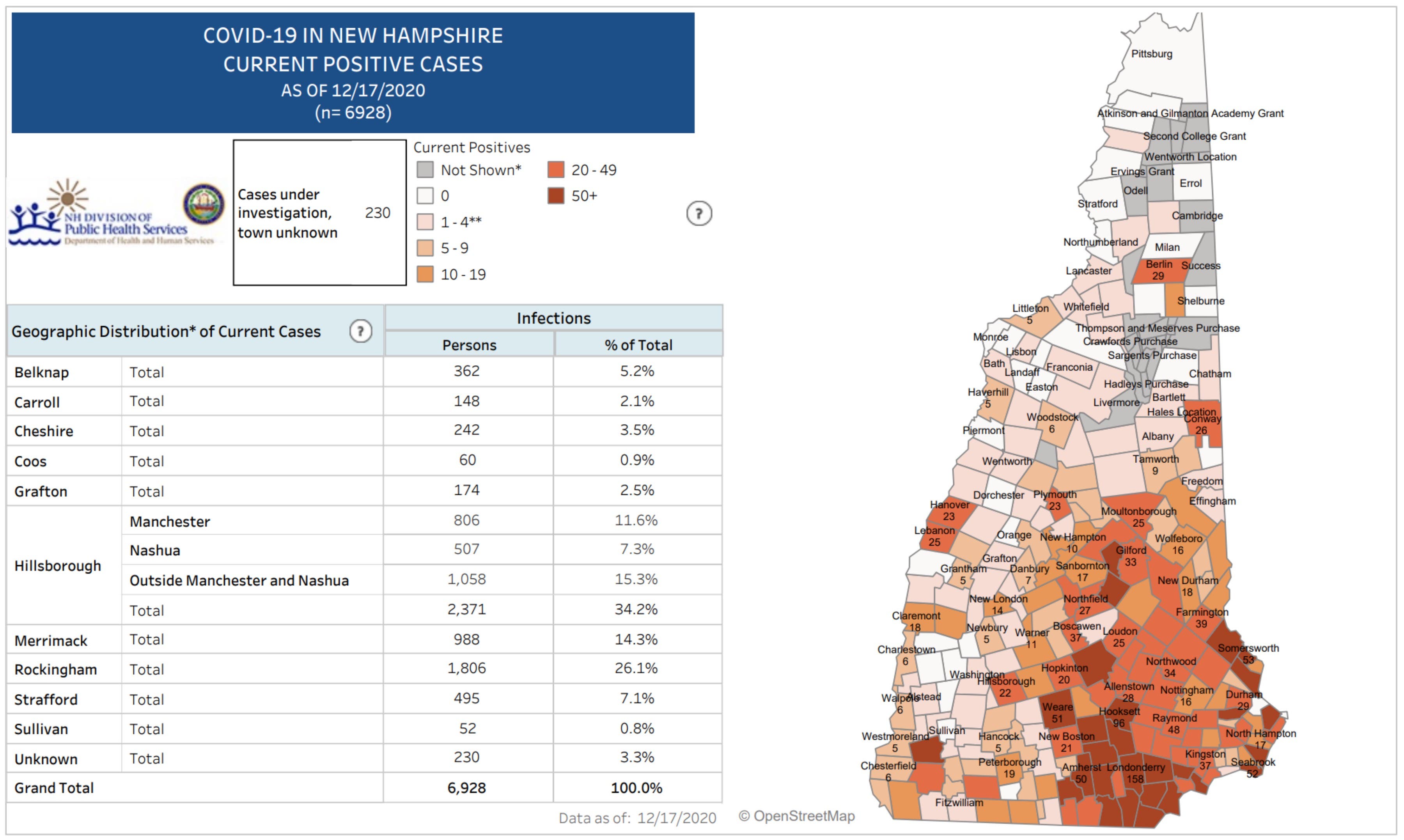 The latest active case count information published on Dec. 17. Source: New Hampshire Department of Health and Human Services.