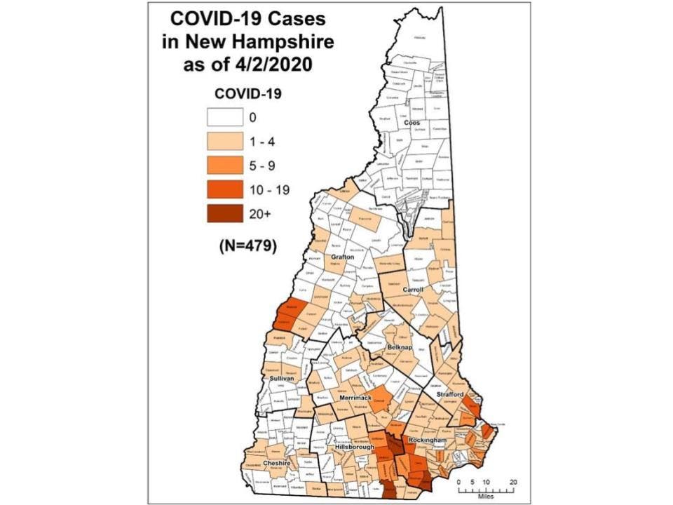 A county breakdown of the numbers as of April 2 including Manchester and Nashua.