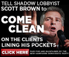 The ads refer to the former Senator as a "shadow lobbyist" and call on him to release a list of the "post-Senate clients" he has been working for.