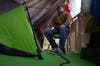 Kevin Dumont of Candia, a part owner and founder of the Liquid Planet Water Park, is hoping to find a partner to pay off $1.6 million in bank debt he owes before a foreclosure auction in December. Yesterday, he set up a tent on top of one of the largest slides and will camp out in the park until he is able to raise the money.