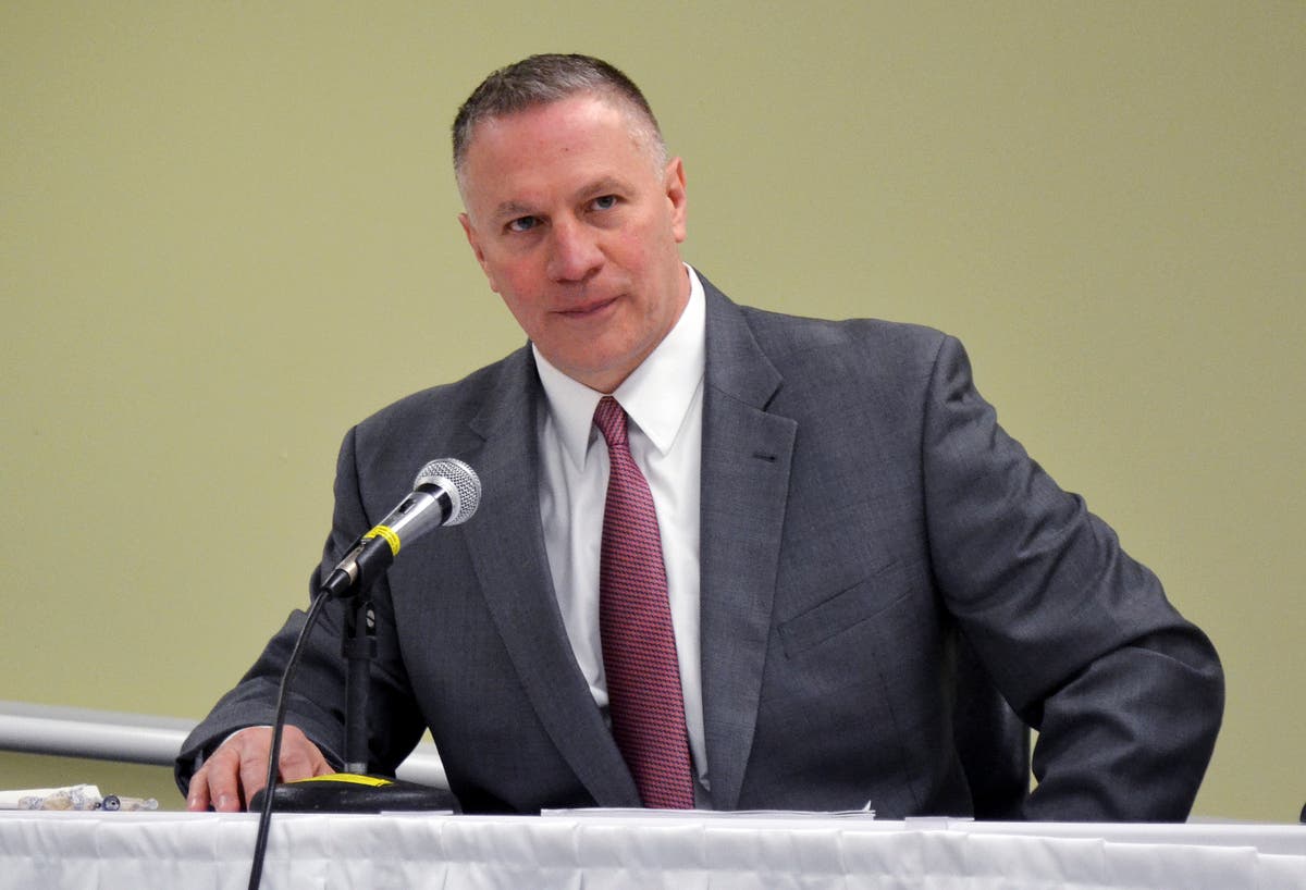William Quinlan, president of Eversource's New Hampshire operations, speaks during a hearing by the state's Site Evaluation Committee for the Northern Pass project Thursday, April 13, 2017, in Concord. (AP Photo/Michael Casey)