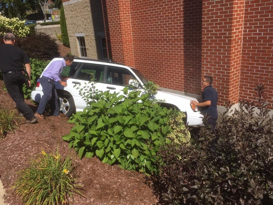 At just before 4 p.m., firefighters posted pictures of a vehicle crashing into a building.