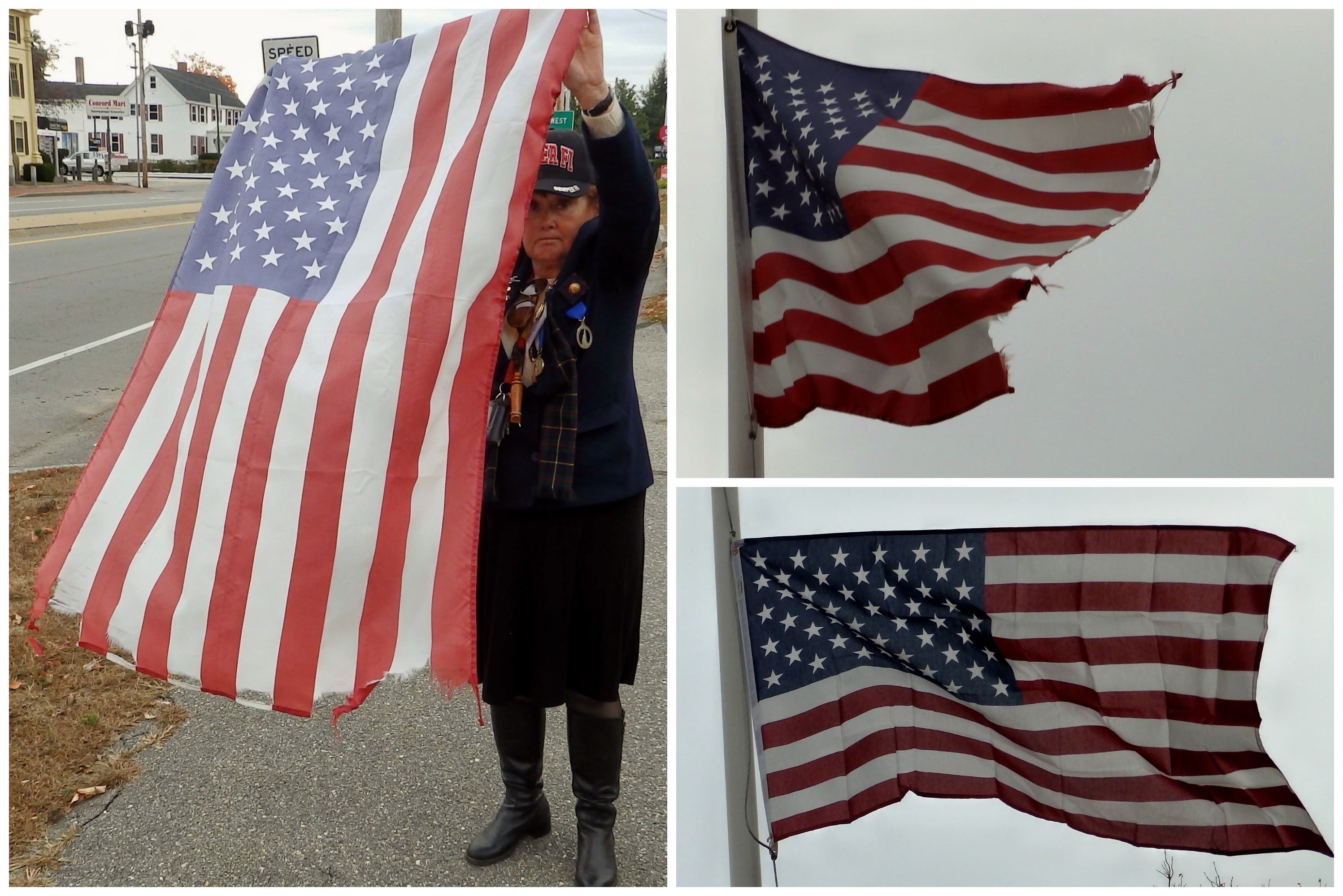 Linda Banfill of the Marine Corp League saw that the flag was tattered to such a degree that it was disrespectful, she noted.