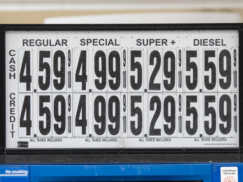The price of gasoline, on average in the state, according to AAA, is $4.23 per gallon. Prices in Concord were as high as $4.39 on Wednesday while at a gas station in Bedford, near Route 101, had a price of $4.59 per gallon for regular.