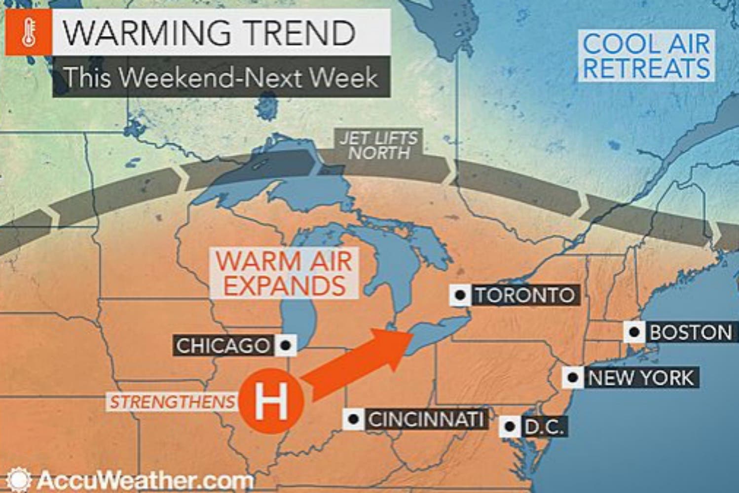 While it has been a bit damp and chilly this week, AccuWeather.com is predicting a warming trend for the weekend and into next week, according to meteorologists.