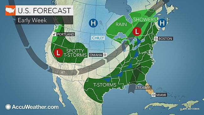AccuWeather.com is predicting that it will be a bit cooler this week due to a backdoor cold front heading into the region. The temperature difference could be as much as 15 degrees lower than today’s highs, which reached the mid-80s in some parts of the state. By the Memorial Day weekend though, it should be warm again.