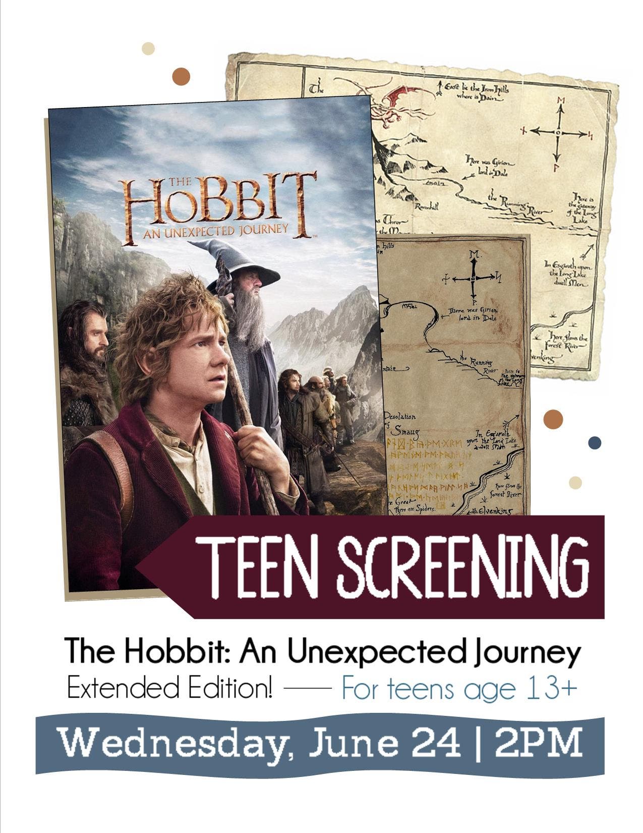 Kick off your summer reading with one of the most heroic journeys ever put to screen: The Hobbit! Join us in the auditorium for the 3-hour extended release of The Hobbit: An unexpected Journey, which includes footage not shown in theaters. Food and drinks will be provided.