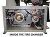 Check out the photo above to see inside a Phoenix tire changer - you will discover quality components, like metal air valves rather than plastic, a motor and transmission that run without vibration and transfer plenty of power to handle even larger wheels, such as Ford F350. Also, you will see a bead breaker cylinder built to last with 5500 lbs of force, and foot controls that operate metal air control valves structured for long trouble-free operation, unlike many higher priced products that use plastic valving but charge a premium price, which perform no better, and do not last.