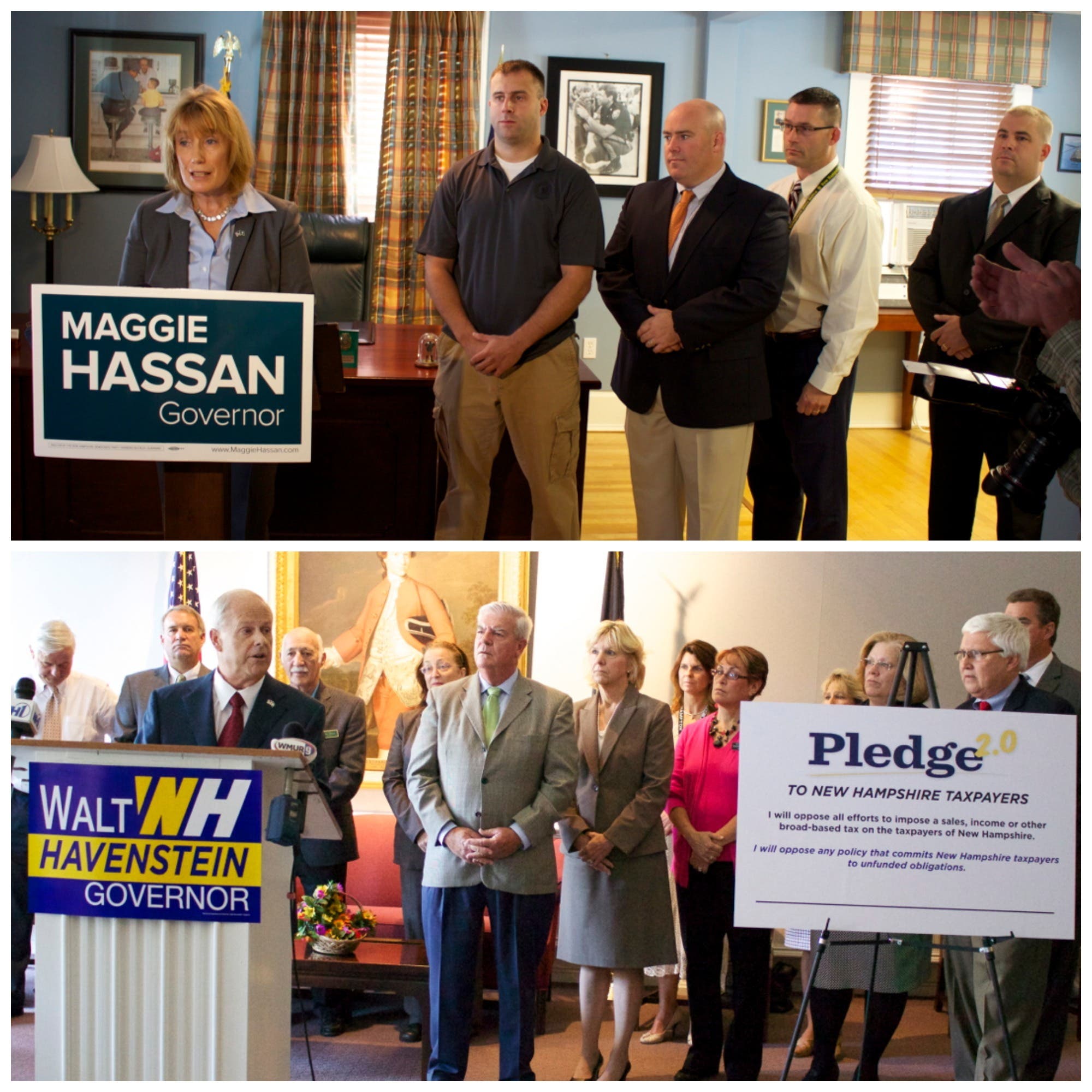 New Hampshire gubernatorial candidates have back-to-back press conferences.