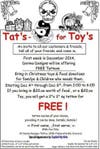 Derma-Designs Tattoo is offering customers a free 2-inch by 2-inch tattoo for any $20 food or $20 toy donation. Want a bigger tattoo? Double the donation.