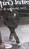 This same subject returns a short time later wearing sunglasses and what appears to be a light colored cloth around his face. The suspect first attempts to pull out the gem-stone and then uses some sort of cutting instrument to cut the wire. The suspect eventually removes the gem-stone and flees in a northerly direction.