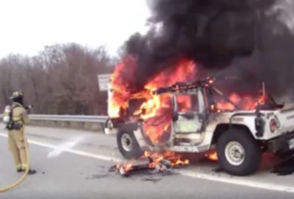 CONCORD, NH - Last week, Concord Fire and Rescue teams, as well as New Hampshire State Police, were called to a Hummer truck fire on I-93 north, just north of Exit 15, where a propane tank had exploded, according to online alerts. Yesterday, the Professional Firefighters of Concord, NH - Local 1045 posted a video from one of the helmet cams of the teams fighting the fire. Check it out below:
