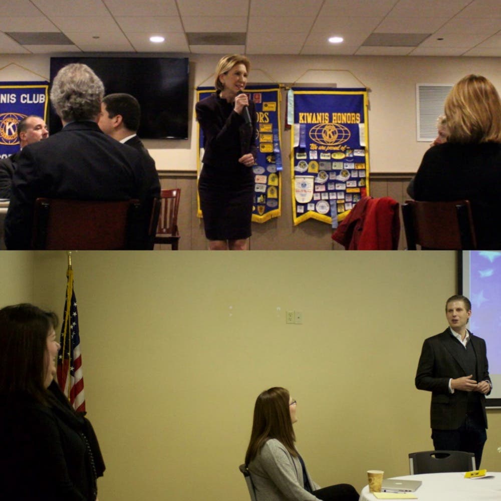 This morning, Eric Trump, the son of the billionaire businessman, stopped by The Office Suite to meet with small business owners from the area; Carly Fiorina spoke to the Concord Kiwanis Club at lunch about her lack of participation in the last debate. Here is a quick clip: