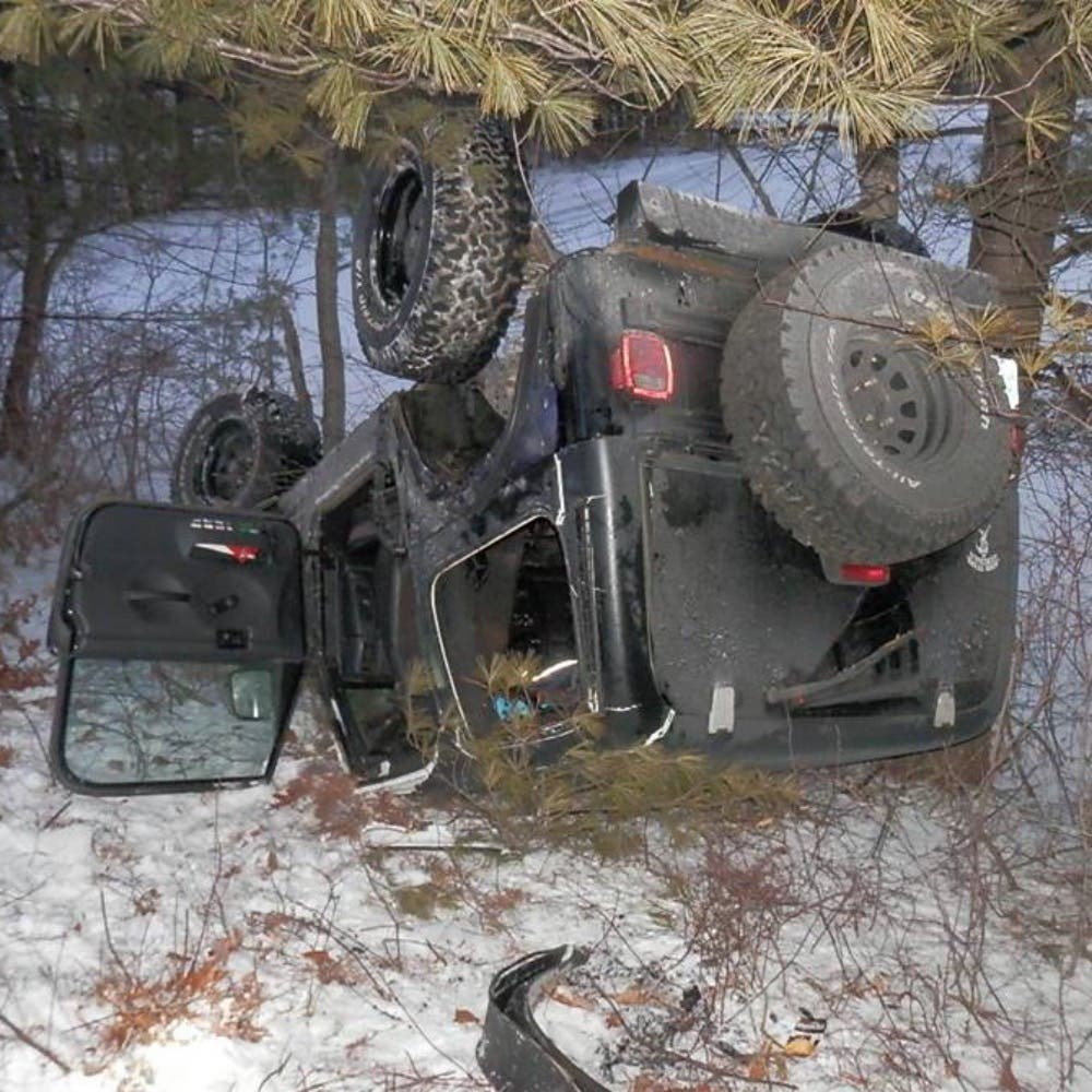 The on-scene investigation revealed that the operator lost control as he was rounding a corner, causing him to veer into the opposite lane and ultimately flip his vehicle, a 2006 Jeep Wrangler, according to police. The Jeep came to rest against a tree, only several feet from a frozen pond. The operator sustained a minor hand injury and was treated on scene by Dunbarton EMS.