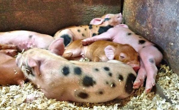 Next day piggy disaster struck again. In the morning, when I checked on them, the runt was barely breathing, her head was swollen, blood was dripping from her ear and she had a bloody nose. She was clearly a “squishing” victim. She hadn't moved fast enough when Momma laid down. With only a 50/50 chance of survival, I gave her to Charlie and his family who decided to take on the risk of nurturing an injured piglet back to life.