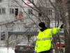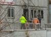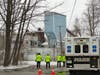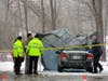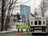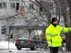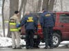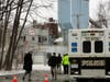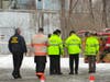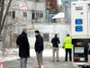 At about 10 a.m., police transported a man away from the scene in the back of a cruiser. He did not appear to be under arrest.