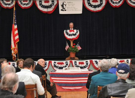 Brian Griset, the Chair of the Exeter Republican Committee, along with the Seacoast Republican Women and the Rockingham County Republican Committee have sponsored a yearlong series of meetings and events around the anniversary of the birth of the Republican Party in Exeter. The night was the culmination of these events with a program and “birthday cake” at the Exeter Town Hall.