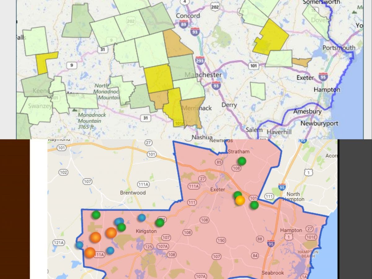 Unitil is reporting more than 1,100 of its 77,000 customers out with most of those outages on the Seacoast: Exeter, Hampton, Kingston, and Sandown, are all reporting less than 100 each; Danville has more than 900 customers out. Hampton Firefighters reported wires down on Morrill Street earlier this morning.