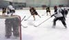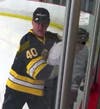 Boston Bruins and comedians raised money Saturday through a charity hockey game for a Hampton waitress fighting breast cancer.